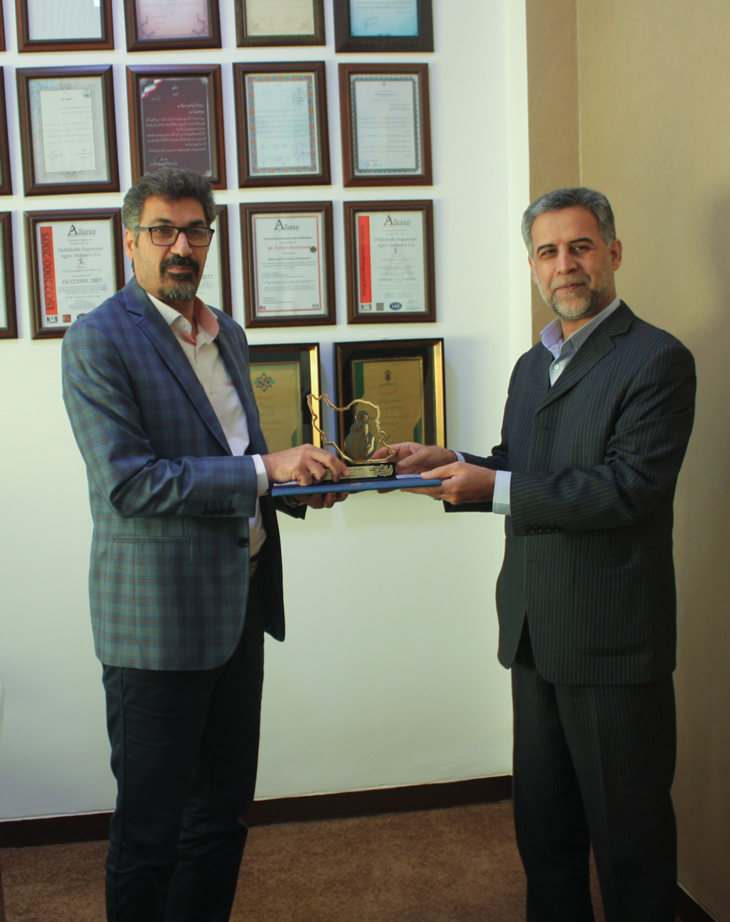 در ادامه این دیدار به آقای حزبیان مدیر منابع انسانی به پاس همکاری صمیمانه لوح تقدیری اهداء گردید.