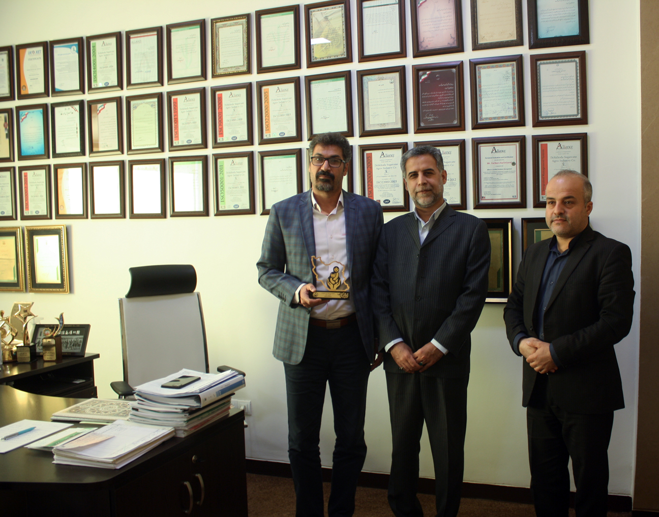 در ادامه این دیدار به آقای حزبیان مدیر منابع انسانی به پاس همکاری صمیمانه لوح تقدیری اهداء گردید.